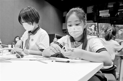 | ②北京市東城區(qū)燈市口小學學生在“筑夢冬奧”實踐課上,制作模型展示體育、勞技、信息技術(shù)等學科交叉知識。本報記者 單藝偉 攝 |