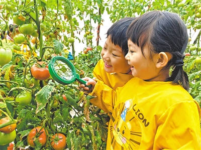 為了讓勞動(dòng)教育常態(tài)化、長(zhǎng)效化,讓幼兒在尊重勞動(dòng)、熱愛(ài)勞動(dòng)的氛圍中健康成長(zhǎng),甘肅省張掖市高臺(tái)縣第六幼兒園充分挖掘縣域周邊教育資源,拓展校外課堂,開(kāi)展了以“融勞蘊(yùn)美樂(lè)成長(zhǎng)”為主題的勞動(dòng)實(shí)踐體驗(yàn)活動(dòng)。圖為幼兒在溫室大棚里觀察西紅柿生長(zhǎng)狀態(tài)。本報(bào)記者 鄭芃生 通訊員 楊麗麗 攝