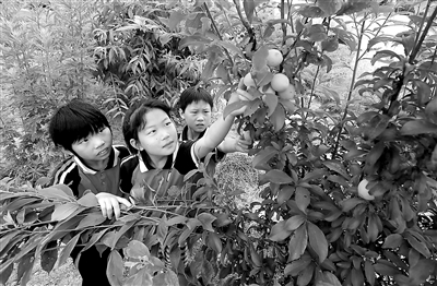 近日,湖北省十堰市竹山縣麻家渡鎮(zhèn)營盤河小學(xué)學(xué)生扛著鋤頭,拿著筐子,在老師的指導(dǎo)下,學(xué)習(xí)采摘辣椒、鮮桃等,忙得熱火朝天。營盤河小學(xué)一至三年級(jí)學(xué)生共37人、教師6名,是一所農(nóng)村小規(guī)模學(xué)校。2021年10月,該校在校園閑置區(qū)域開墾出10多塊開展勞動(dòng)教育的試驗(yàn)田,建成占地1500平方米的“幸福農(nóng)場(chǎng)”。