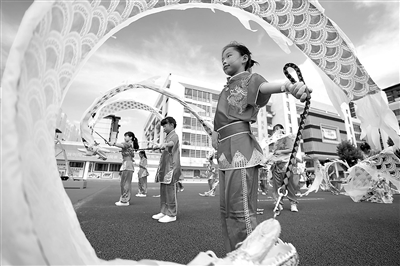 6月25日,在福建省福州市倉(cāng)山區(qū)教師進(jìn)修學(xué)校附屬第一小學(xué),學(xué)生們正在進(jìn)行新型彩帶龍展示。近年來(lái),該校積極創(chuàng)新陽(yáng)光體育大課間活動(dòng)內(nèi)容,將傳統(tǒng)體育項(xiàng)目列為校本課程,聘請(qǐng)了非遺傳承人組建舞龍、舞獅社團(tuán),進(jìn)行基礎(chǔ)專業(yè)技藝訓(xùn)練,讓學(xué)生在豐富多彩的文體活動(dòng)中鍛煉身體、共享陽(yáng)光、快樂(lè)成長(zhǎng)。謝貴明 攝