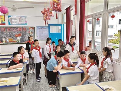 “敢為小先生,就是把課堂的主陣地讓給孩子們,鼓勵孩子們在講臺上分享自己的學(xué)習(xí)體會和收獲,培養(yǎng)孩子們的自主能力和自信意識。從課堂向課外進行延伸,從學(xué)校向家庭、社會融合,敢為小先生、能做小主人,最終的目標是爭當永遠跟黨走的小好漢?!毙掳残W(xué)黨支部副書記周永飛說。
