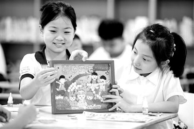 近日,在浙江省湖州市長興縣夾浦鎮(zhèn)社工站,孩子們在裝裱自己制作的亞運主題紐扣畫。暑期,當?shù)亻_展愛心公益托班,當?shù)卮髮W生志愿者為轄區(qū)內(nèi)雙職工子女、新居民子女進行為期一個月的日??醋o,并開設公益課堂、非遺體驗、勞動實踐、紅色研學等豐富多彩的活動,讓孩子們度過安全、快樂、有意義的暑假。