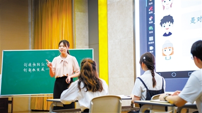 授課結(jié)束后,為檢驗(yàn)學(xué)生所學(xué),學(xué)校開展了第一屆“行知杯”金牌師范生素養(yǎng)展評活動。面向參加2023年“暑期小學(xué)期”的在校師范類本科生和研究生,分語文、數(shù)學(xué)、英語等9個學(xué)科進(jìn)行展評,展評項(xiàng)目包括主題演講、板書展評、模擬授課、教案展評。