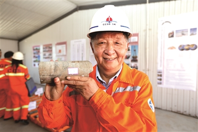 鉆探過(guò)程中有兩個(gè)場(chǎng)景讓我很難忘。一個(gè)是學(xué)生發(fā)現(xiàn)第一層火山灰的場(chǎng)景。當(dāng)時(shí)他雖然感覺(jué)發(fā)現(xiàn)的物質(zhì)比較特殊,但不能確定,就交給老師看。我們馬上制作巖石薄片并用顯微鏡觀察,當(dāng)確定是火山灰無(wú)疑時(shí),大家都?xì)g呼起來(lái)。另外一個(gè)場(chǎng)景就是松科二井打到7018米深度時(shí),非常不易,最后那段巖心取出來(lái)的時(shí)候,大家就像火箭發(fā)射前倒計(jì)時(shí)一樣一起喊:“10,9,8,7……3,2,1!”我托著巖心留下了一張照片,后來(lái)這張照片入選了慶祝改革開(kāi)放40周年大型展覽。