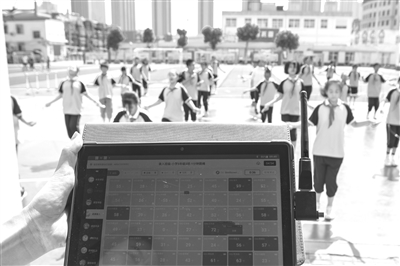 與常規(guī)體測中,體育教師帶著學(xué)生站在跑道邊、手掐秒表的緊張不同,學(xué)校的操場上沒有計時員,只有幾根可以監(jiān)測學(xué)生跑姿和速度的智能體測立柱,在學(xué)生結(jié)束跑步的一瞬,精準(zhǔn)、即時的成績數(shù)據(jù)就呈現(xiàn)在教師的管理后臺上。