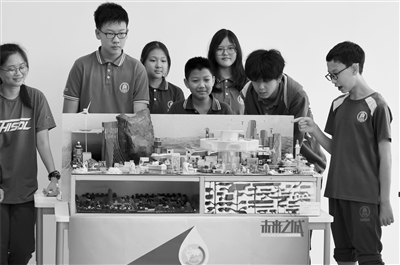 創(chuàng)造,需要學(xué)生運(yùn)用工程管理的理念,結(jié)合目標(biāo)呈現(xiàn)的樣態(tài)將想法付諸實(shí)踐,從而形成承載研究想法的作品。創(chuàng)造也是由理論走向?qū)嵺`的重要途徑。如何科學(xué)地引導(dǎo)學(xué)生創(chuàng)造,非??简?yàn)教師的活動(dòng)設(shè)計(jì)水平。我們通常的做法是以項(xiàng)目目標(biāo)為驅(qū)動(dòng),要求學(xué)生制作出模型、海報(bào)或展板等實(shí)物。在創(chuàng)造的過(guò)程中,以項(xiàng)目報(bào)告為管理工具,推進(jìn)項(xiàng)目有序進(jìn)行。在推進(jìn)未來(lái)城市設(shè)計(jì)的過(guò)程中,我們采用了制作城市模型的形式,這樣可以全方位鍛煉學(xué)生科學(xué)、技術(shù)、工程、藝術(shù)和數(shù)學(xué)方面的素養(yǎng)。