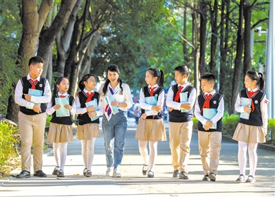 你始終認(rèn)為,建設(shè)教育強(qiáng)國,需要在教育改革中堅持文化自信。你一直將中華優(yōu)秀傳統(tǒng)文化融入學(xué)校教育教學(xué),通過班會課、快閃演出、情景劇等,為傳統(tǒng)佳節(jié)增添“文化味”;在校園里開展射弩、舞龍舞獅、古箏、版畫、爨體書法等社團(tuán)活動,增強(qiáng)孩子們的民族自信心和文化自豪感。