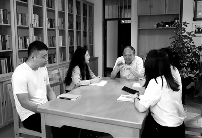史寧中與學(xué)生討論問題。學(xué)校供圖