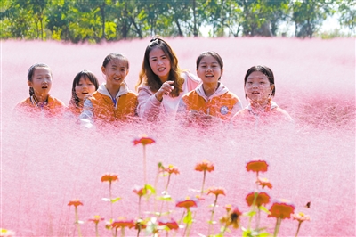近日,山東省高密市王吳小學師生在粉黛亂子草花田里游玩。該校利用農村學校資源優(yōu)勢,組織開展生態(tài)研學活動,讓孩子們充分感受大自然的魅力。