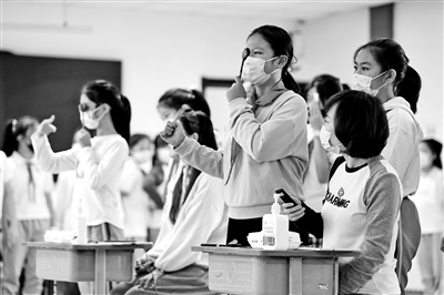 近日,天津市和平區(qū)中心小學教師在進行校園視力常態(tài)化普查。和平區(qū)教育局依托天津醫(yī)科大學眼科醫(yī)院設立的天津市中小學生視力健康管理中心的專業(yè)力量,每學期選派教師參加視力篩查技能培訓,至今已有747名教師取得“中小學生視力篩查專業(yè)技能證書”,達到百人一名篩查教師的標準。本報記者 陳欣然 攝