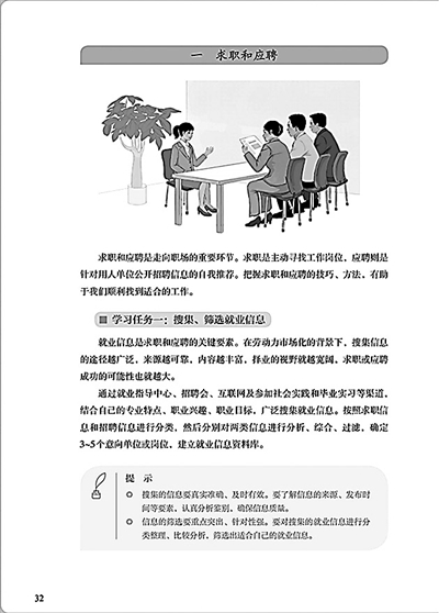 整套教材的編排,除基礎(chǔ)模塊上下冊外,還專門設(shè)置了職業(yè)模塊,體現(xiàn)了鮮明的職業(yè)教育特色。如職業(yè)模塊特別設(shè)計(jì)了“勞模精神工匠精神作品研讀”和“職場應(yīng)用寫作與交流”專題。其中,“勞模精神工匠精神作品研讀”專題設(shè)置兩個(gè)文本單元和一個(gè)活動(dòng)單元,既有反映普通勞動(dòng)者、勞動(dòng)模范依靠勞動(dòng)創(chuàng)造幸福生活的優(yōu)秀作品,也有革命導(dǎo)師闡述職業(yè)選擇的理論文章,還有圍繞“走近大國工匠”開展的學(xué)習(xí)活動(dòng)。這些作品或活動(dòng)有機(jī)融入了職業(yè)道德教育、科學(xué)家精神教育和勞動(dòng)教育,旨在培育學(xué)生的職業(yè)理想、職業(yè)精神和崇尚勞動(dòng)的價(jià)值觀念?!奥殘鰬?yīng)用寫作與交流”專題包括兩個(gè)活動(dòng)單元,每個(gè)單元分別安排了三項(xiàng)任務(wù)。每項(xiàng)任務(wù)通過具體的學(xué)習(xí)任務(wù)來完成,旨在培養(yǎng)學(xué)生的職業(yè)能力,增強(qiáng)學(xué)生的職業(yè)道德意識(shí),為實(shí)現(xiàn)高質(zhì)量就業(yè)和職業(yè)生涯發(fā)展奠定基礎(chǔ)。