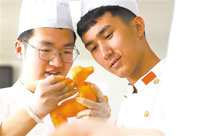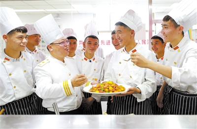經(jīng)過(guò)近兩個(gè)月的學(xué)習(xí)培訓(xùn),獲得烹飪中級(jí)工證書(shū)的和碩班學(xué)生艾合麥提江十分高興?!斑@里的學(xué)習(xí)生活很充實(shí)也很愉快。學(xué)校還專(zhuān)門(mén)組織我們游覽了偉大祖國(guó)的首都北京,并且在天安門(mén)前合了影。如果有可能的話,我想在北京開(kāi)一間維吾爾族特色餐館,讓全國(guó)各族人民都能品嘗到新疆的美食。”他說(shuō)。