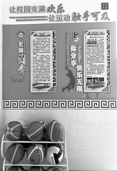 打陀螺、滾鐵環(huán)、踢足球……走進浙江省舟山市普陀山學校,運動場上到處活躍著學生運動的身影。校園的走廊及教室門口張貼了運動項目簡介,擺滿了各類運動器材。