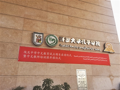 在開(kāi)羅大學(xué)的校園中,很容易就能辨認(rèn)出孔子學(xué)院的大樓,與周?chē)<帮L(fēng)格的建筑不同,孔院大樓外觀采用當(dāng)?shù)剌^為少見(jiàn)的玻璃幕墻,顯得風(fēng)格明快、別具特色。