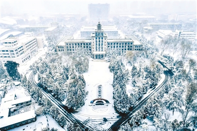 第一場霜雪來臨,如千萬朵白色的茉莉花在空中翩翩起舞,給東北大學的校園帶來了一場純白的夢。披著銀裝的校園映入眼簾,如同一幅水墨畫。詩情畫意中的白山黑水,共同構(gòu)成了冬日里的校園美景。