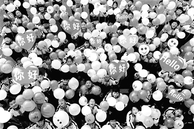 近日,山東省棗莊市光明路街道田莊小學(xué)學(xué)生手舉問候語、彩色氣球等表達(dá)祝福。為迎接“世界問候日”,該校開展多彩主題活動(dòng),學(xué)生們通過不同的方式傳遞溫情。 吉喆 耿德剛 攝