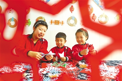 近日,河北省唐山市豐潤區(qū)新軍屯鎮(zhèn)中心幼兒園開展巧手剪紙手工實(shí)踐活動(dòng),教師講解窗花剪紙藝術(shù)及“小雪”節(jié)氣的相關(guān)知識(shí),傳授剪紙技巧,讓孩子們感受民間藝術(shù)和傳統(tǒng)文化的魅力。朱大勇 攝