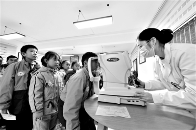 近日,在湖北省襄陽市??悼h城關(guān)鎮(zhèn)土門小學(xué),眼科醫(yī)生為學(xué)生做視力篩查。該校邀請(qǐng)眼科醫(yī)生入校,幫助學(xué)生及時(shí)發(fā)現(xiàn)視力問題并采取預(yù)防和治療措施,提高學(xué)生愛眼意識(shí)。楊韜 劉國(guó)清 攝