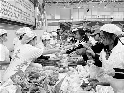 近日,廈門市蔡塘學校學生正在“買菜”。該校舉辦第三屆“食悅杯”家務勞動技能大賽,以班級為單位,設置兩葷一素自選菜烹飪、家鄉(xiāng)特色小吃烹飪和跟著主廚現(xiàn)場學藝、洗洗涮涮4個環(huán)節(jié),檢閱并培養(yǎng)學生的勞動技能。學校供圖