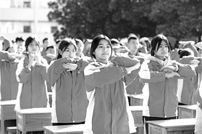 日前,貴州省黔西市鐘山鎮(zhèn)鐘山中學(xué)學(xué)生在課間表演課桌操。今年以來,鐘山中學(xué)結(jié)合校園實(shí)際,組織編排形式多樣、風(fēng)格獨(dú)特的課桌操,幫學(xué)生提高身體素質(zhì),緩解學(xué)習(xí)壓力。 周訓(xùn)超 攝