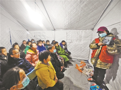 當(dāng)天恰逢冬至,馬志紅和其他志愿者一起,給安置點(diǎn)內(nèi)所有孩子準(zhǔn)備了豐富的零食,陪大家在“帳篷學(xué)?!倍冗^一個(gè)特殊又溫暖的節(jié)日。