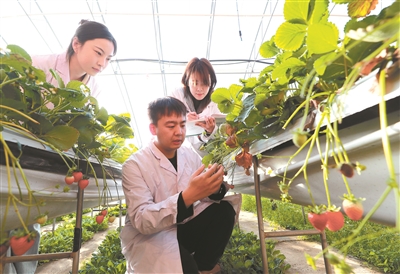 1954年,沈陽農大在全國率先組建草莓研究團隊,研究選育中國自己的好品種。之后,團隊選育出“綠色種子”品種,這是我國正式審定的第一個草莓品種。2014年,沈陽農大張志宏團隊通過雜交育種選育出具有自主知識產權的優(yōu)質抗病草莓品種“艷麗”。該品種具有果形漂亮、風味濃郁、果實耐貯運等優(yōu)點。近年來,“艷麗”草莓已逐漸成為我國栽培面積最大的自育品種。