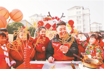 1月12日,在江蘇省如皋市城南街道新華社區(qū)新華幼兒園內(nèi),小朋友們在觀賞糖畫制作。當(dāng)日,江蘇省如皋市城南街道新時代文明實(shí)踐所、新華社區(qū)婦聯(lián)聯(lián)合新華幼兒園舉辦“傳統(tǒng)游園會 歡樂迎新春”活動,小朋友觀賞糖畫制作,學(xué)習(xí)做年糕,體驗(yàn)剪窗花,體驗(yàn)傳統(tǒng)民俗,喜迎新春佳節(jié)。徐慧 攝