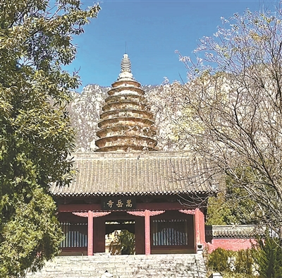 為了尋塔,多少人翻山越嶺踏破鐵鞋;為了拜塔,多少人不辭勞苦千里相會(huì)。2023年秋,我連續(xù)在嵩山看了嵩岳寺北魏塔、永泰寺隋塔、會(huì)善寺唐塔、大法王寺唐塔,或登高遠(yuǎn)觀,或穿林近仰,無不為它們的美所傾倒動(dòng)容。當(dāng)初冬9點(diǎn)多鐘的陽光側(cè)照在法王寺塔上,竟然神奇般地呈現(xiàn)出一種我從未見過的玉質(zhì)般的顏色、潤(rùn)度與美感,讓這座土黃色的古磚塔變成了一件玉雕作品。隨著不同的視角,塔身兩側(cè)的弧線也顯出無與倫比的微圓與曼妙。塔后是嵩山花崗巖的白色山體,再后是瓦藍(lán)的天空,塔剎頂上一只烏鴉鳴叫著飛來又飛走,那聲音回蕩在山野,仿佛從歷史的深處傳來。在如雨般明亮的冬光里,我不知待了多久,最后才十步九回頭,依依不舍地離去。