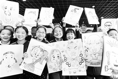 海鹽縣三毛小學(xué)的學(xué)生正在展示她們創(chuàng)作的漫畫(huà)。海鹽縣教育局 供圖