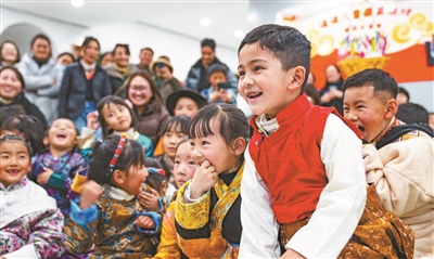 2月3日,孩子們?cè)诶_的兒童藏裝派對(duì)上觀(guān)看手偶表演。老師在派對(duì)上向孩子們講解藏歷新年的傳統(tǒng)習(xí)俗,活動(dòng)豐富了孩子們的寒假生活。