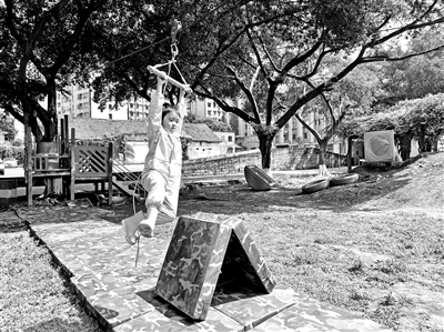 活動過程:為了支持孩子們實現(xiàn)心愿,我們在幼兒園里增添了“極速滑索”游戲項目,孩子們玩得花樣百出、樂此不疲。教師和孩子們一起,利用戶外的小土坡和攀登架,在草坪四周的大樹上,拉起了兩條結(jié)實的滑索道。在高高的滑索上,孩子們握緊把手騰空而起,一飛沖天,心中有興奮和雀躍,更感受著些許的緊張和刺激,對飛行員叔叔的感知也從“眼見”“耳聞”,轉(zhuǎn)化為“親歷”“實感”。