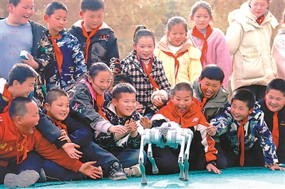 近日,甘肅省張掖市臨澤縣板橋鎮(zhèn)中心小學(xué)學(xué)生興奮地觀看機(jī)器狗表演。新學(xué)期伊始,該校邀請(qǐng)縣科協(xié)“科普大篷車”進(jìn)校園開(kāi)展科普教育活動(dòng),讓學(xué)生近距離感受科技魅力。沈貝 攝