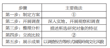 以2023年3月廣州一模考試第5題為例:南粵中學組織同學們分組合作開展嶺南文化調(diào)查研究活動。請根據(jù)材料一,借鑒費孝通先生的研究方法,完成以下表格。(4分)