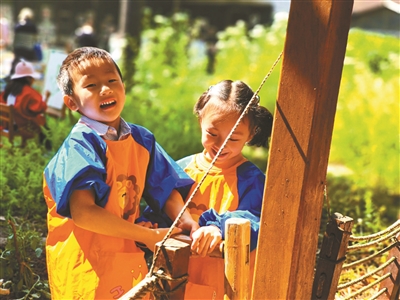 “幼兒園就是孩子的家,在這里他們能做主,里里外外的空間都能走進(jìn)去、玩起來(lái)?!备眻@長(zhǎng)杜丹說(shuō),理想中的幼兒園就像家一樣,教師和孩子一起過(guò)日子,孩子有安全感和歸屬感,游戲時(shí)更自主、專注、投入。
