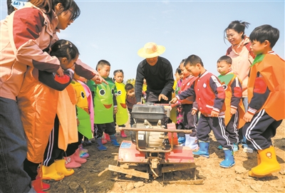 春和景明,正是春耕好時(shí)節(jié)。日前,在浙江省慈溪市坎墩街道實(shí)驗(yàn)幼兒園的種植園內(nèi),孩子們?cè)谵r(nóng)民伯伯的幫助下參與勞作,直觀地感受傳統(tǒng)春耕文化,了解農(nóng)業(yè)知識(shí)。樊穎杰 攝