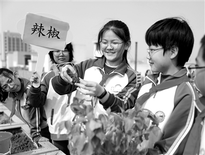 近日,在山東省青島市西海岸新區(qū)膠南小學的樓頂農(nóng)場,學生們開展春季勞動實踐。該校利用校園建筑樓頂平臺,開辟了樓頂小農(nóng)場,由每個班級管理一塊“責任田”。在教師的帶領(lǐng)和指導下,學生們參與蔬菜、中藥材的種植管護,在勞動實踐中磨煉意志,培養(yǎng)勤儉節(jié)約、熱愛勞動的良好習慣。