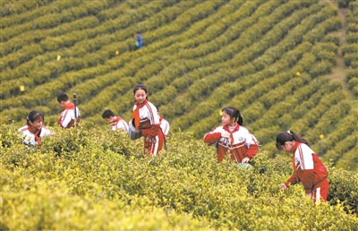 近日,江西省吉安市泰和縣馬市鎮(zhèn)中心小學學生在甘露村生態(tài)茶園體驗采茶。該校積極開展勞動教育實踐活動,把課堂“搬”到戶外,讓學生體驗勞動的快樂。
