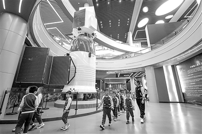 4月24日是中國(guó)航天日,不少學(xué)生游客來到哈爾濱工業(yè)大學(xué)航天館參觀,接受科普教育。