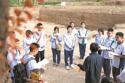 “近距離觀察夯土、城墻、高臺這些建筑結(jié)構(gòu)時,歷史在我腦中就不僅僅是一個抽象的概念了。了解這些文化背景,對于豐富我的知識儲備起到了很大幫助,也讓我更加理解自己生活的這片土地。”高二(8)班學生何若禹說。
