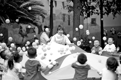近日,湖南省懷化市通道侗族自治縣雙江鎮(zhèn)興星幼兒園孩子在做彩虹傘抖球游戲。近年來,該縣各學校積極開展“陽光大課間”活動,通過趣味運動游戲、體能訓練等豐富多彩的活動,激發(fā)和調(diào)動學生參與體育鍛煉的興趣和熱情,讓學生在運動中享受陽光,快樂成長。李尚引 粟芳菊 攝