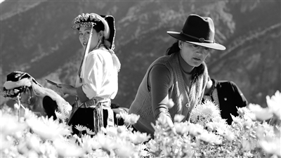 “要致富,先修路?!痹诠鸹ǖ膸ьI(lǐng)下,懸崖峭壁上一條氣勢恢宏的盤山公路連通了甲居一村的致富路。她還幫助、指導(dǎo)村民修建藏寨,藏式民居成了村民現(xiàn)代化的家和游客驛站,并對村落中的古老建筑進行加固與修繕,讓百年藏寨在歲月中無聲傳承。同時,她帶領(lǐng)村民抓產(chǎn)業(yè),全村老少硬是在山包上摳出了兩口蓄水池,重新整治4公里的高山水渠,為生態(tài)農(nóng)業(yè)發(fā)展奠定基礎(chǔ)。此外,閑忙兩不誤,農(nóng)業(yè)生產(chǎn)和發(fā)展旅游互補,并以花田務(wù)工、技術(shù)輸出等多元化方式示范帶動村民種植金絲皇菊,形成了初具規(guī)模的“菊花+”全產(chǎn)業(yè)鏈條。