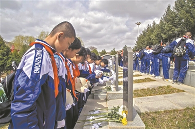在這條路上,教師們看到,一位陪女兒徒步的父親走不動了,女兒停了下來,攙扶著爸爸,鼓勵他加油繼續(xù);他們看到,連翻兩座山后,站在刻著“革命烈士永垂不朽”的紀(jì)念碑前,站在100多個(gè)沒有姓名的無字墓碑前,少年們紅了的眼眶和鞠躬時(shí)深深彎下去的脊背……