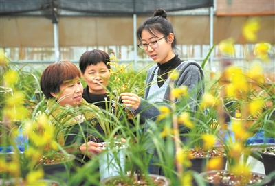 近日,在浙江省湖州市長興縣龍山街道川步村蘭花種植基地大棚內(nèi),返鄉(xiāng)創(chuàng)業(yè)大學(xué)生王琳(右)在指導(dǎo)工人對蘭花的土壤進(jìn)行采樣。大學(xué)畢業(yè)后,王琳回到川步村,參與創(chuàng)辦了蘭花種植基地,從事蘭花種植和線上線下銷售,發(fā)展蘭花種植產(chǎn)業(yè),助力鄉(xiāng)村振興。