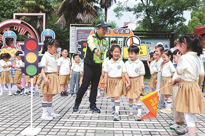 5月21日,在浙江省湖州市吳興區(qū)龍泉街道白魚潭社區(qū)的“有禮市集”上,交警通過(guò)場(chǎng)景模擬的方式為湖州市第三幼兒園的孩子們普及交通安全知識(shí)。從今年初開始,當(dāng)?shù)囟ㄆ谂e辦“有禮市集”,以此提升市民的文明意識(shí),推進(jìn)基層文明建設(shè)。