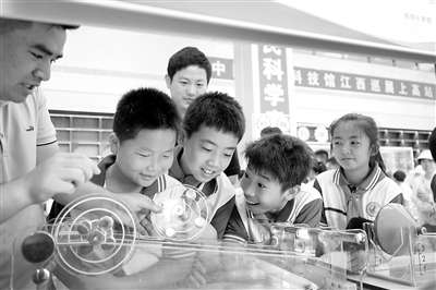 5月24日,中國流動科技館江西巡展(上高站)活動在江西省上高縣圖書館拉開帷幕。該巡展設(shè)置了聲光體驗、電磁探秘、機器韻律、人體科學(xué)等展區(qū)。學(xué)生們在互動中學(xué)習(xí)科學(xué)、體驗科學(xué)。圖為上高縣錦陽小學(xué)的孩子們在展覽中感受科技帶來的樂趣。