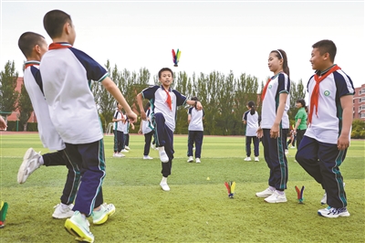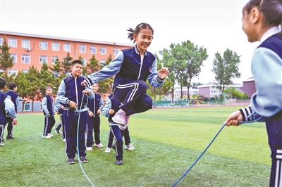 搖花繩、踢毽球、打腰鼓、跳啦啦操……在吉林省的中小學(xué)校園里,學(xué)生們利用陽(yáng)光體育大課間以及體育課,在操場(chǎng)上、運(yùn)動(dòng)場(chǎng)上充分享受陽(yáng)光和運(yùn)動(dòng)帶來(lái)的快樂(lè)。