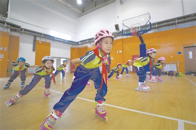 滑冰、滑雪是吉林省中小學(xué)的特色運(yùn)動(dòng)項(xiàng)目。這些冬季項(xiàng)目如何在夏季操場(chǎng)上繼續(xù)煥發(fā)活力?為冰雪替代項(xiàng)目開(kāi)發(fā)場(chǎng)地、創(chuàng)造條件,長(zhǎng)春新區(qū)吉大英才學(xué)校想了不少好辦法。學(xué)校在長(zhǎng)春新區(qū)教育局的支持下,加大冰雪運(yùn)動(dòng)及替代設(shè)備器材配備,旱地“滑冰”、室內(nèi)模擬滑雪吸引了不少喜歡冬季運(yùn)動(dòng)的孩子,也能更加充分利用現(xiàn)有場(chǎng)地設(shè)施,科學(xué)統(tǒng)籌使用操場(chǎng)、體育場(chǎng)館等,實(shí)現(xiàn)運(yùn)動(dòng)空間最大化。