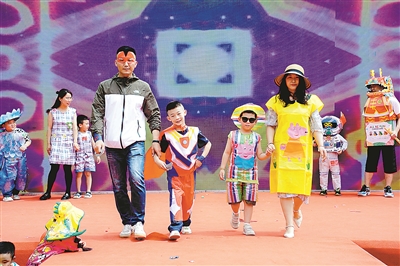 近日,甘肅省蘭州市西固區(qū)蘭玻幼兒園的“親子環(huán)保時(shí)裝秀”激情上演。一個(gè)環(huán)保袋、一個(gè)紙盒、一個(gè)小杯子……在幼兒和爸爸媽媽的巧手下被賦予了新的意義,也增進(jìn)了親子之間的感情?!拔覀兇罅Τ珜?dǎo)環(huán)保理念,增強(qiáng)幼兒環(huán)保意識,陶冶幼兒藝術(shù)情操,更好地發(fā)揮幼兒的想象力和創(chuàng)造力?!痹搱@園長周文莉說。本報(bào)記者 尹曉軍 攝
