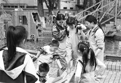 為此,我們強調(diào),在戶外自主活動中要實施基于問題跟進的持續(xù)性支持。這就要求教師對幼兒游戲過程中遇到的困難進行不斷的跟進與引導(dǎo),通過語言鼓勵、榜樣示范等不同的方式讓幼兒積極應(yīng)對挑戰(zhàn),不斷嘗試篩選出最適宜的策略,從而實現(xiàn)問題的解決。幼兒的發(fā)展是一個長期性的、漸進的連貫過程。教師對幼兒的跟進支持還應(yīng)體現(xiàn)在兩個維度上:在橫向維度上關(guān)注幼兒在健康、社會、語言、藝術(shù)以及科學(xué)等各領(lǐng)域活動中的發(fā)展,發(fā)現(xiàn)幼兒經(jīng)驗整合的契機;在縱向維度上關(guān)注幼兒在不同年齡階段其自身知識與經(jīng)驗的發(fā)展,看到幼兒的進步與變化。只有這樣,教師才能更好地支持幼兒在自主性戶外活動中的學(xué)習(xí)與發(fā)展,并且為幼兒身心素質(zhì)的提高提供持續(xù)性的支持。