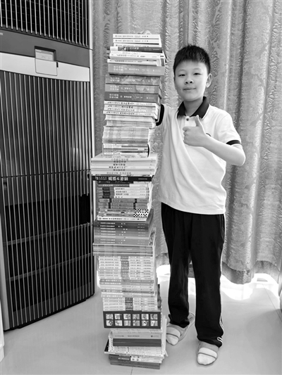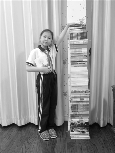 前面算過了,每天只要讀書20分鐘,人人都可以做到讀書等身。但這一算,因為有點兒抽象,有些人可能想不出這種讀書等身的樣子,所以,給學(xué)生及家長、老師算過之后,我對“讀書等身”又有了新注解,有了人人可以做的策略,即每學(xué)年最后一天,也可以每年最后一天,父母與孩子一起把一學(xué)年(一年)讀過的書壘起來,共同與書合影。我把這樣的照片稱為“讀書等身照”(有人說,借圖書館、班級圖書角、在書店里看的書,不能帶回家,怎么辦?很簡單,每次借書,看一看與自己讀過的書哪一本厚度差不多,拍照時,用這些讀過的書代替一下,轉(zhuǎn)個方向,不把書脊上的字露出來就可以了)。